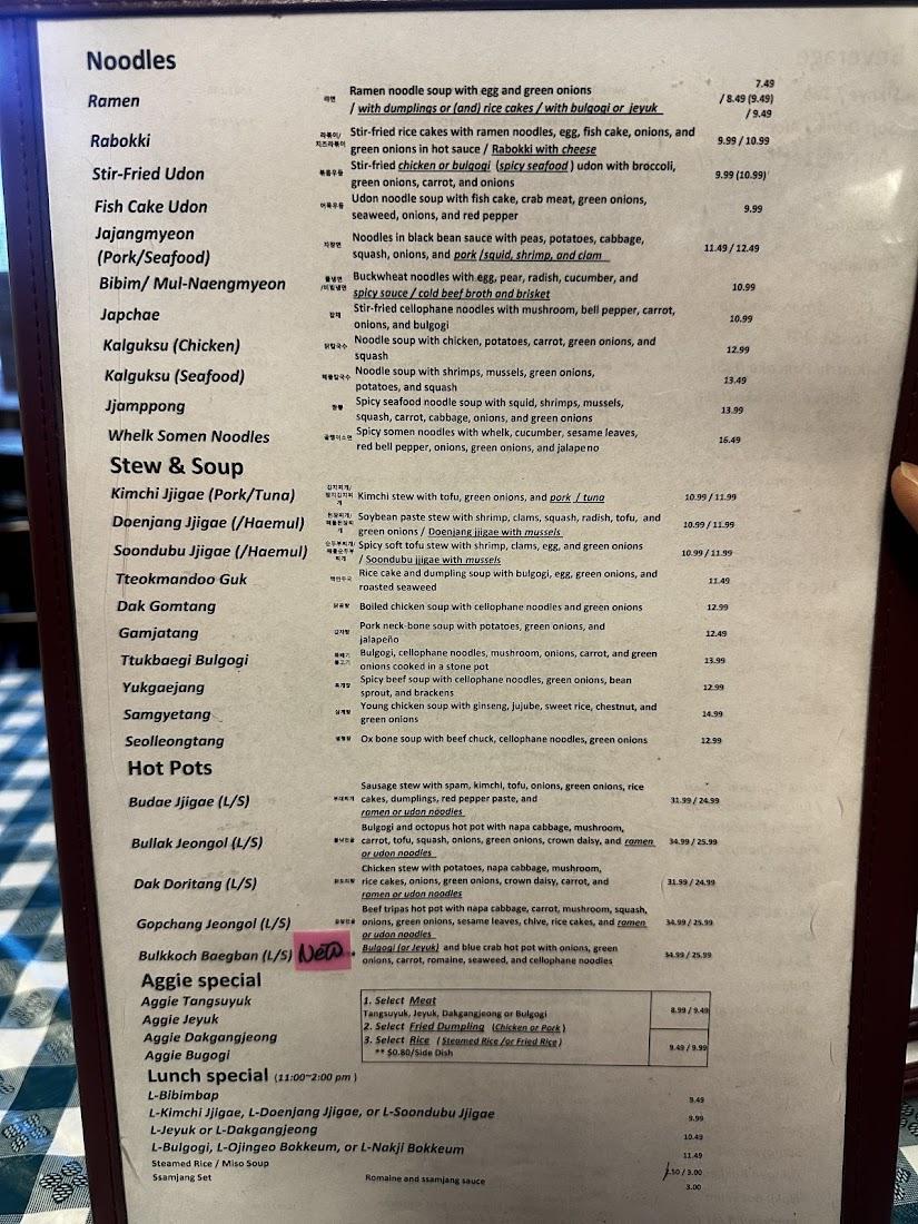 Our modest yet clean and inviting dining area fosters community connections and a quiet escape from the bustle of college life. We emphasize comfort and health in our offerings, catering to diverse palates while maintaining affordable prices between $10 and $20 per meal. Our staff are known for their kind and attentive service, enhancing your dining experience with genuine Korean hospitality.